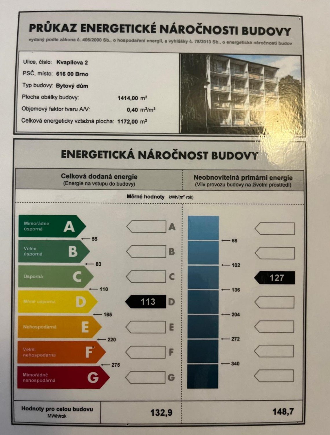| Ukazatel ENB | 113 kWh/m2 za rok |